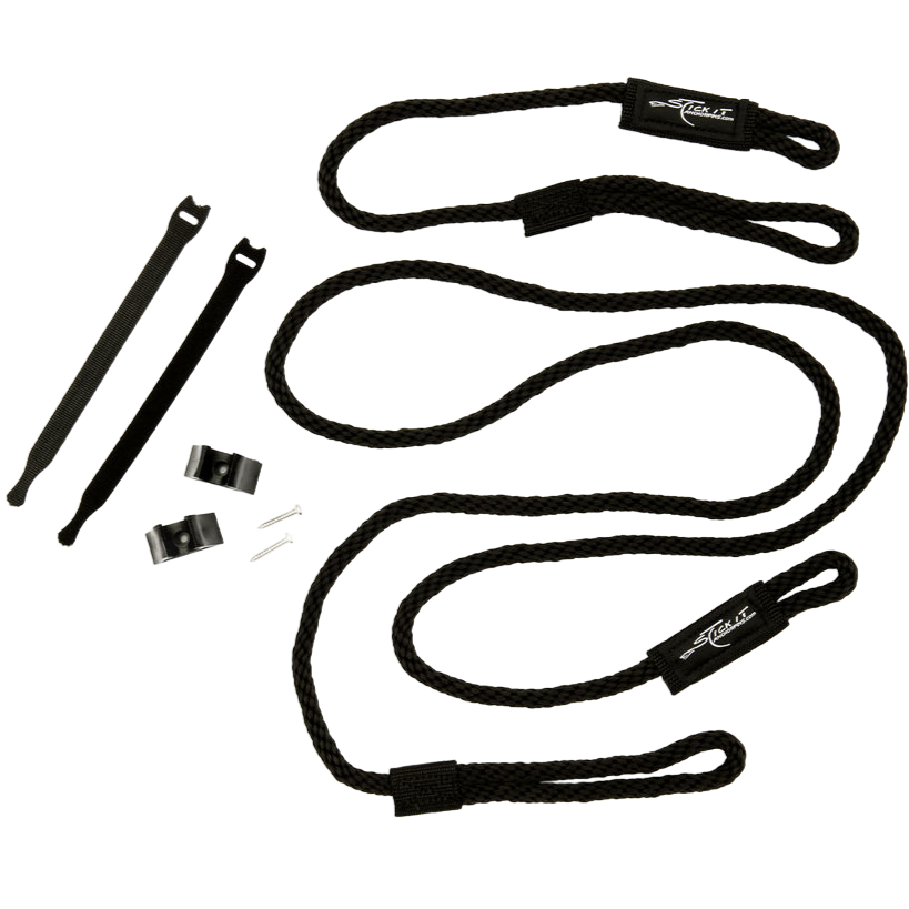 Stick-It's accessory kits for their boating anchor pins (sold separately) allow you to secure your kayak or small craft in place while on the water. The kit for smaller boats includes an adjustable rubber grommet to let you fine tune your desired depth, and the larger kit includes velcro straps, mounting brackets, and all necessary hardware.
