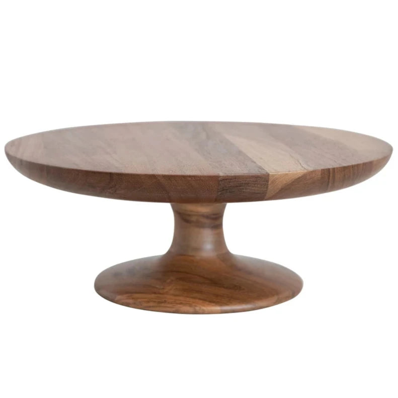 This classic acacia wood pedestal is perfect for stylishly displaying your favorite dishes. Its Scandinavian-inspired silhouette is food safe and easy to clean with a damp cloth. The pedestal is 13" round and 5" tall, making it a sophisticated addition to any table.