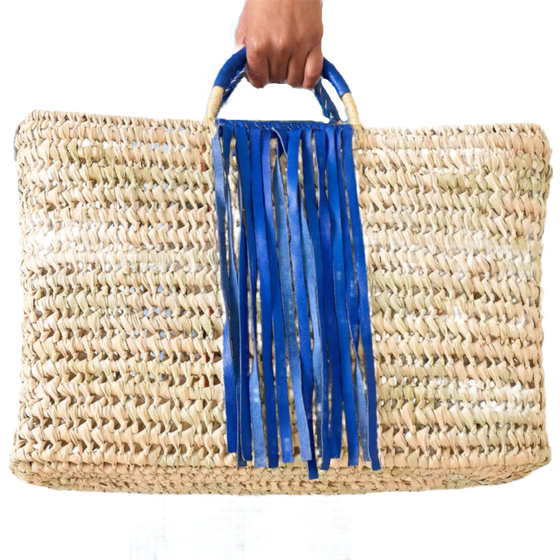 Inspired by the bustling souks of Morocco, Mersea's Bazaar Basket tells a beautiful story of timeless craftsmanship and care. Handwoven by straw artisans in the coastal town of Essaouira, these baskets are built to withstand a busy day on the go or to stand alone as room decor. Now featuring our latest leather fringe design, it's perfect for packing picnic lunches, sunblock, and towels for lazy days at the beach–or, if you're like us, for stowing away your laptop and paperwork. The hand-dyed, hand-sewn leather handles complete the artisanal look.