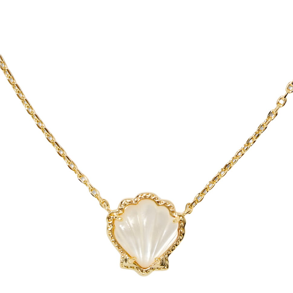 Inspired by carefree days spent collecting treasures on the beach, the Brynne Gold Shell Short Pendant Necklace is too cute to miss. Featuring etched grooves for added texture, this shell-shaped pendant has signature Kendra Scott hoofprint detailing on its frame for an added textured touch. Stacked up or styled solo, this necklace will add that coastal chic aesthetic to your look. 19" chain.