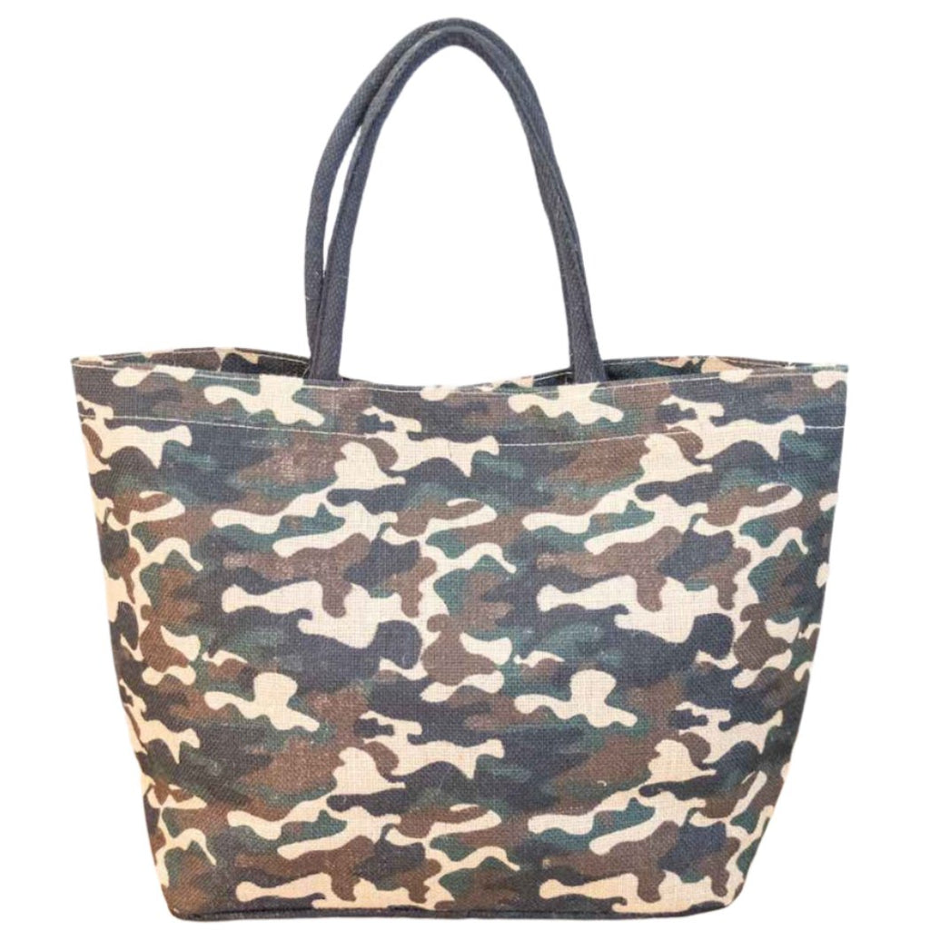 Chic style you can see! This camp tote features a top magnetic closure and small interior pocket. Made of natural jute fiber. 20" W X 14" H X 6" D