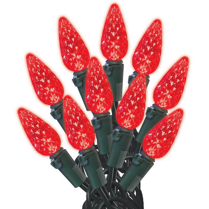 Greet this Christmas season in style with Celebrations C6 LED lights. These 100 faceted lights are perfect for lighting up both inside and outside your home. Decorate your Christmas tree, mantels, wreaths, garlands, banisters, hedges, fences, pillars and more with these flexible light strings. The green wire disappears into your holiday decorating, so you just focus on the bright glowing lights. With a 100 lights and lighted length of 24.5' you can connect up to 22 sets to create a winter wonderland.