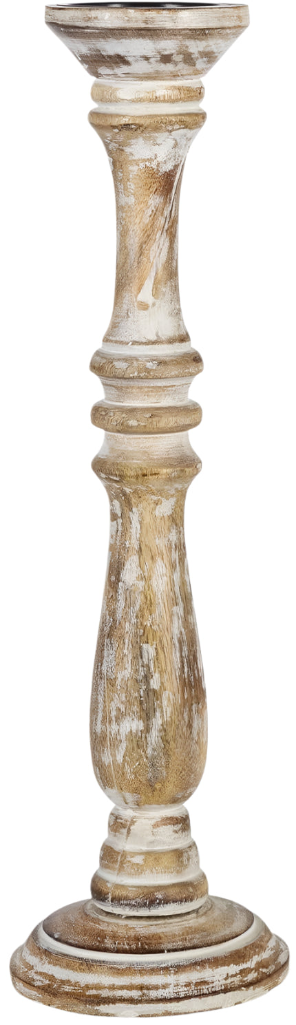 This 20" whitewashed mango wood candle holder makes the perfect accent piece for any dining room table or living room. Each candle holder is large enough to accommodate up to a 3" diameter candle. Perfect to use with an Everlasting Glow LED candle or a real candle of your choice.