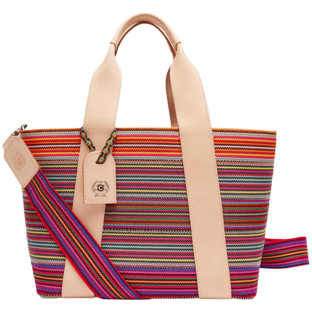 Our Carryall was crafted with versatility in mind. Roomy enough for plenty of work essentials, farmer’s market, the gym or necessities for a day packed with appointments. We love this bag for everyday use. This tote features our comfortable leather handles, and our signature adjustable crossbody woven straps. Snap closure and interior open and zipper pockets. Natural leather handles and trim. 13.25” (W at the base), 17.5” (W at the top) x 10.5” (H) x 6.5” (D), 7.5” Drop.