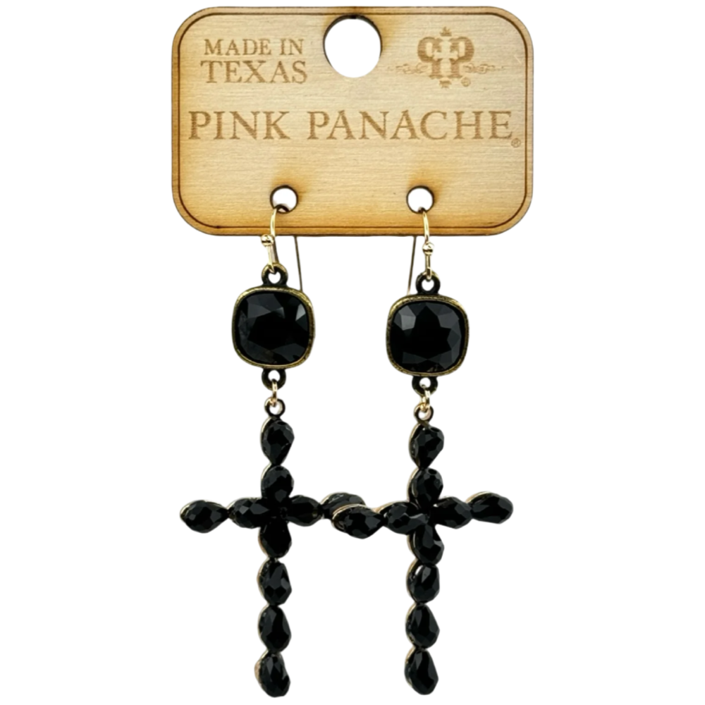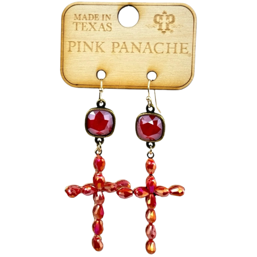 These Pink Panache earrings feature cross-shaped wire-wrapped teardrop beads, embellished with a 1cm Austrian crystal connector. With a total length of 2.25", these earrings offer a sophisticated and elegant look for any occasion. Add a pop of color and shine to your outfit with these faceted teardrop bead cross earrings. Made with high-quality materials, these earrings are perfect for any fashion-savvy individual.