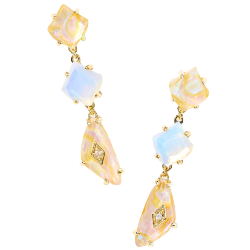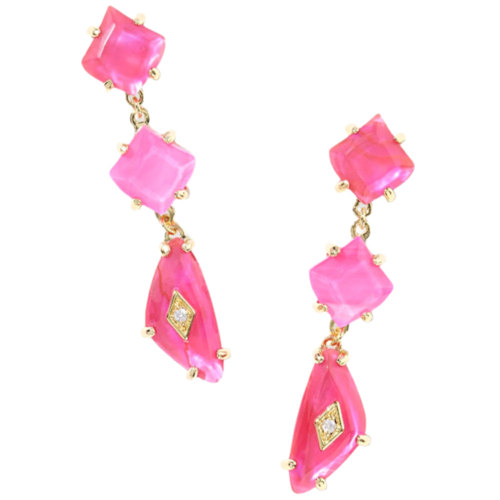 Cause a stylish commotion with the Bianca Linear Earrings! These three-tier earrings feature color-coordinated stones in frameless settings, dotted with beautiful cubic zirconia accents for that "perfectly imperfect" vibe. 1.73" total length.
