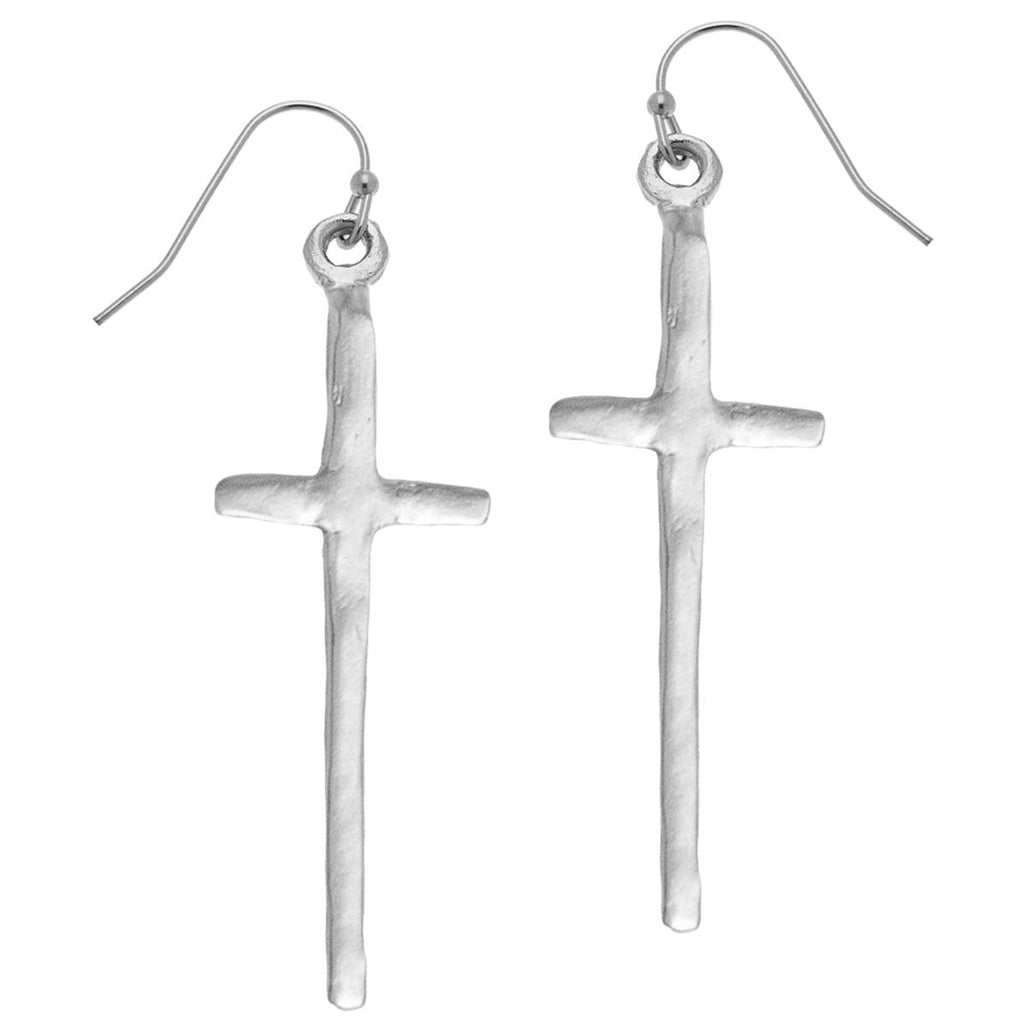 This modern take on a cross earring has an artistic feel, and we love how easily they pair with fun fits or timeless attire. Sterling silver. Proudly handmade in San Antonio, TX.