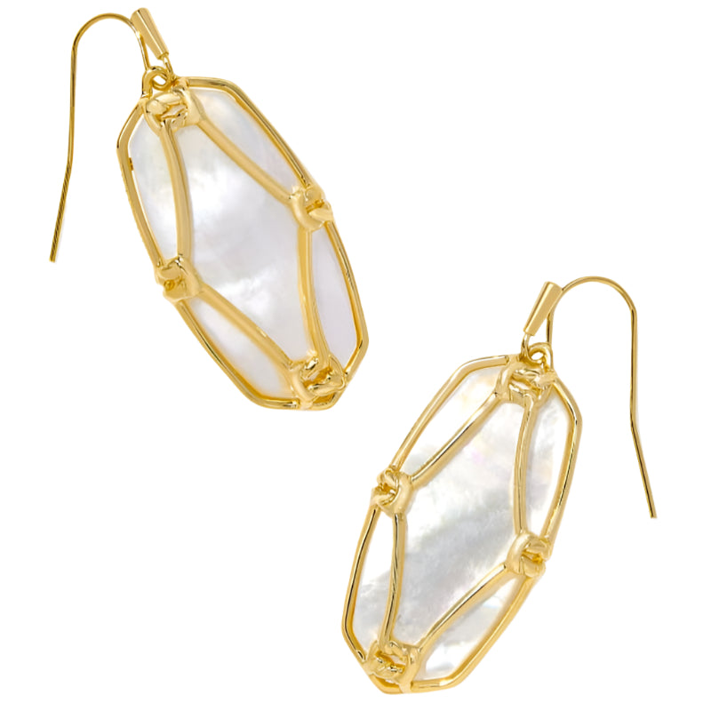 Kendra Scott's iconic eye-catching earrings have a new artistic twist in the Elle Lattice Frame Gold Drop Earrings. With a new metalwork technique inspired by the texture of lace, these earrings were made to stand out with a bold elegance and beautiful colors that fit into any collection.