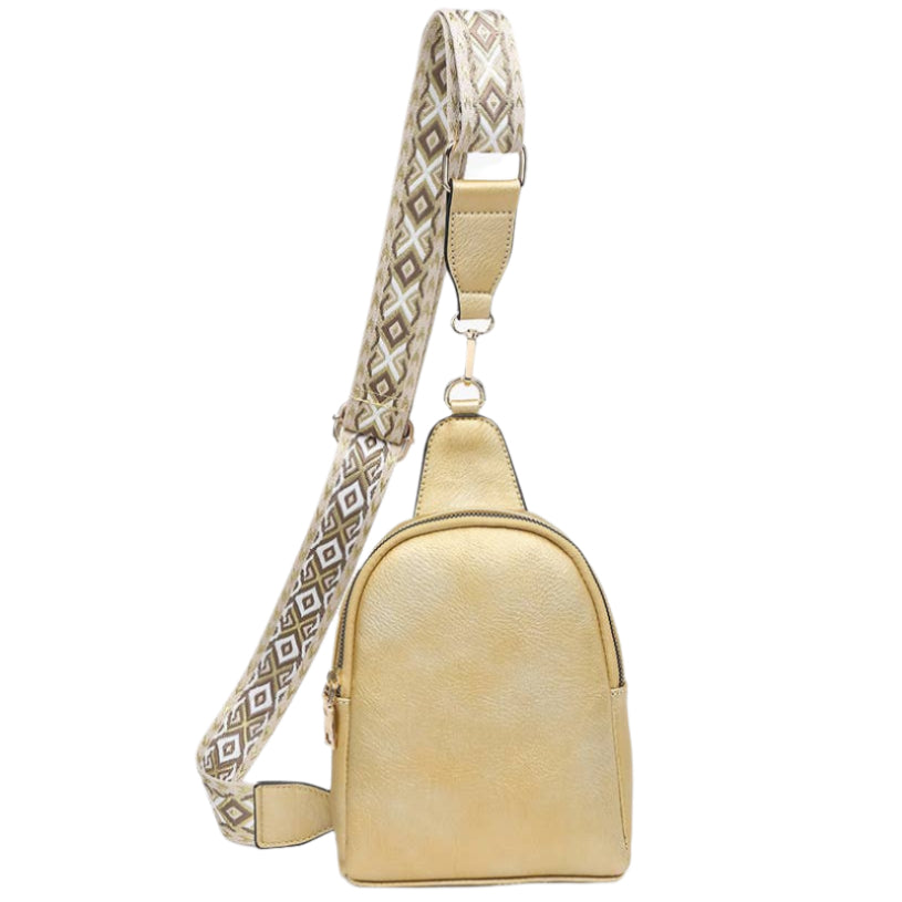Discover the Ellen Guitar Sling Bag, a stylish and functional accessory designed to complement your on-the-go lifestyle. With its zip closure and adjustable/removable guitar strap, this sling bag offers both security and versatility. Whether you're running errands or exploring the city, the Ellen bag is your perfect companion. 6.5" x 2" opening, 8" deep.