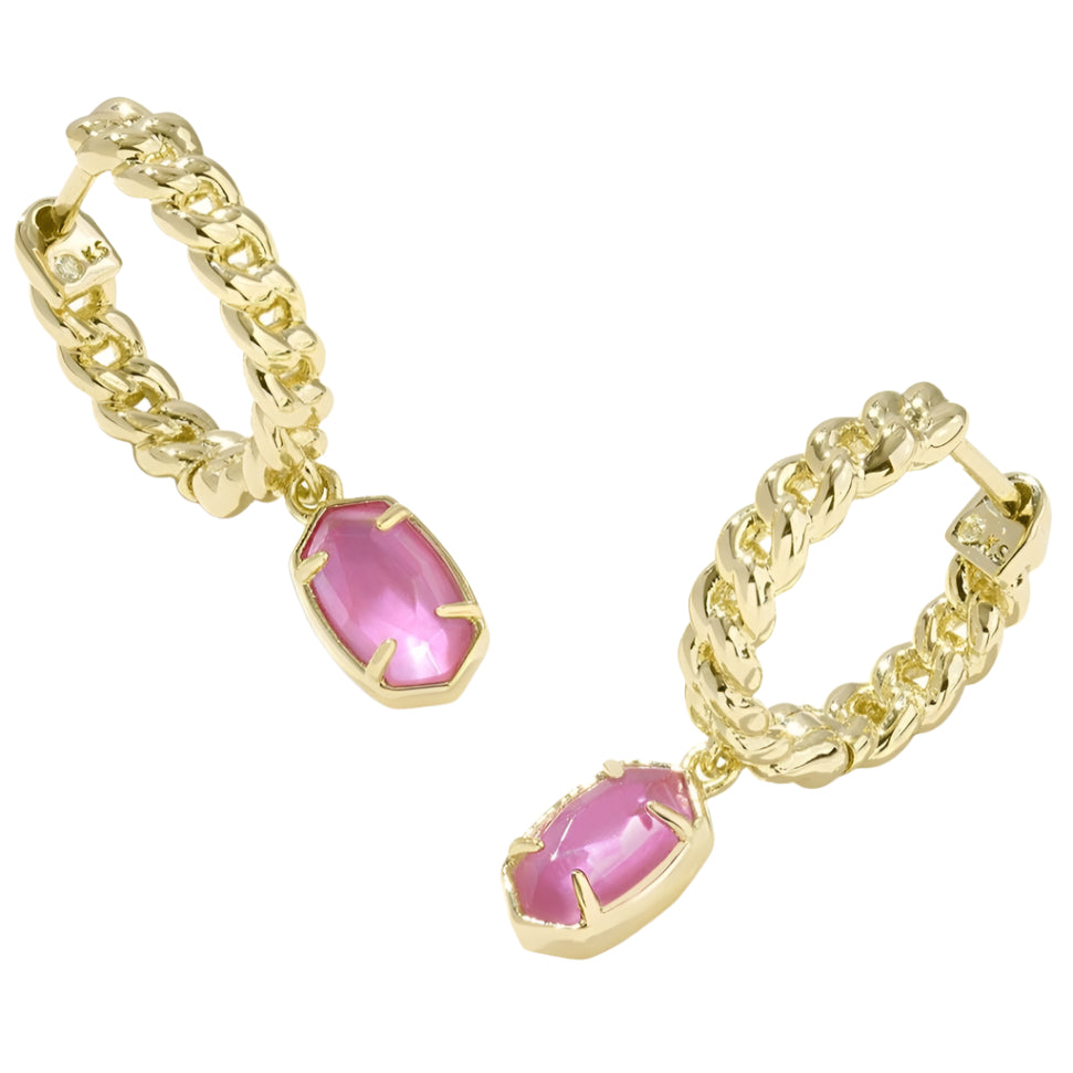 The Emilie Huggie Earrings by Kendra Scott are eye-catching, on-trend, and totally unique. A sparkling stone dangles from a huggie in a bold link design, making sure that this petite style does not go unnoticed. Crystal charms measure 0.16" x 0.28" and hang from a 0.57" diameter hoop.
