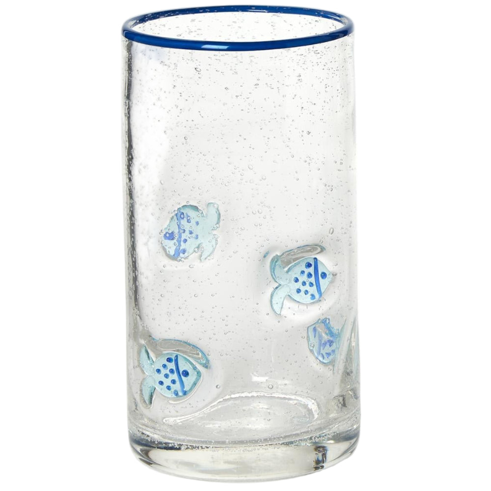 Add whimsy into your dining experience with the charming Fish Clear Bubble Highball Glass. Hand-painted rim with a whimsical fish design, adds a touch of coastal elegance to any tablescape. Perfect for serving refreshing cocktails or sparkling water, this 18 oz glass is a delightful addition to any collection.