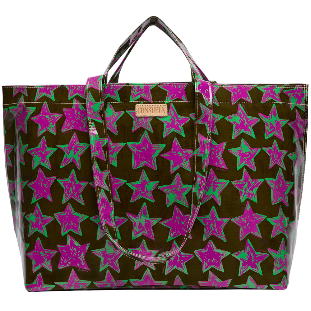 The Jumbo Bag hauls beach towels, gym essentials, and road trip necessities with ease. Fold this bag flat for easy storage and keep it on hand for any adventure that comes your way. Diego natural leather logo accent. Unlined interior. Base insert for stability. Short and long handles. Made in Mexico. 18” (W at the base), 25” (W at the top) x 15” (H) x 9.75” (D), 4” drop (short handle), 14” drop (long handle).