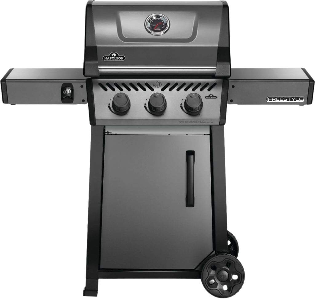 The Freestyle 365 Propane Gas Barbecue is a compact grill with premium features and unbeatable value. Ignited by the instant JETFIRE ignition system that lights the main burners with a jet of flame easily, every time. Get the perfect sear over the cast iron porcelainized enamel cooking grids. Three stainless steel burners provide heat that can be easily controlled by ergonomic knobs and monitored by the onboard temperature gauge. The rugged wheels allow this barbecue to go where the action is, while the easy-to-fold side shelves, featuring tool hangers and a bottle opener, make sure that the Freestyle meets your lifestyle and space.