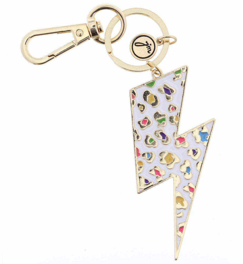 Add a pop of color and personality to your little one's backpack or purse with our Rainbow Leopard Lightning Bolt Keychain from Jane Marie. With a vibrant and colorful design, this 3" keychain not only helps in easy identification but also brings a fun and fashionable flair.