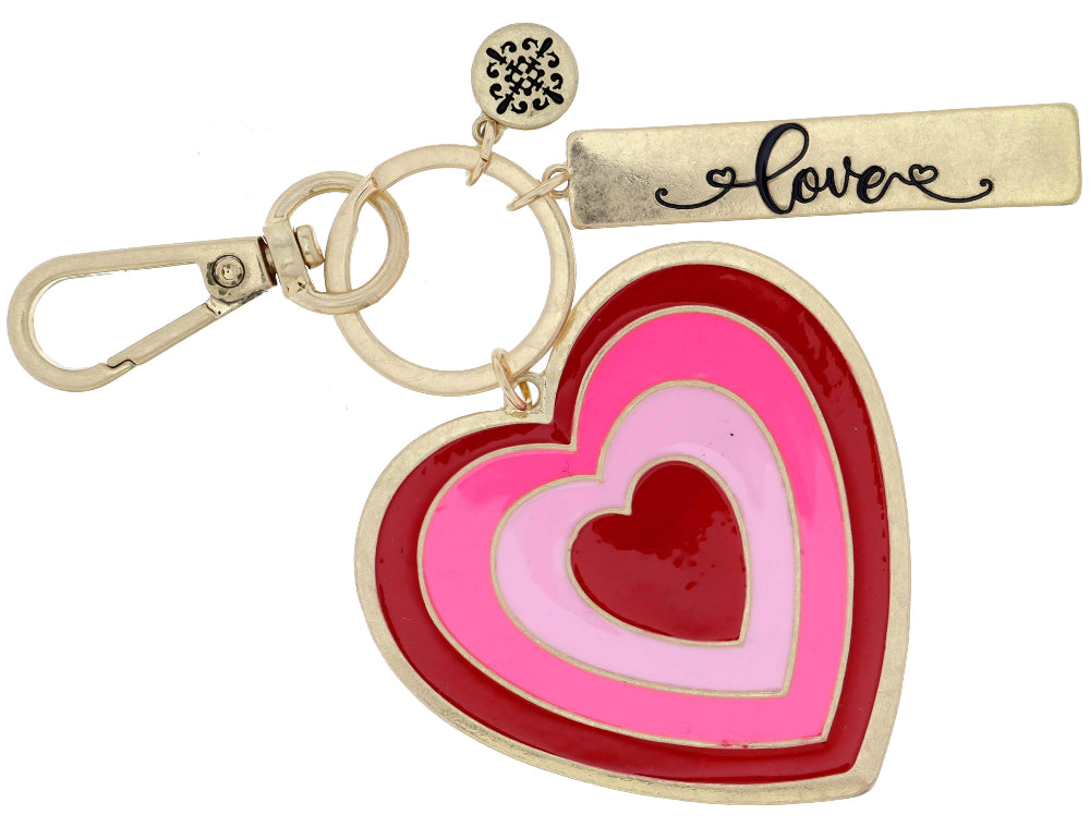 The Jane Marie "Love" Heart Bar Keychain is a part of our "Belongs To Me!" series. This keychain features a 2.5" chain with a 2" pendant, showcasing an enameled heart. It's a unique and personal item to own or give as a gift.