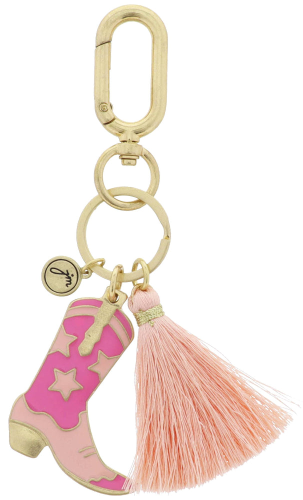 Stay chic and organized with Jane Marie's Pink Star Cowgirl Boot & Tassel Keychain. Measuring 2" from top to bottom, this keychain is a perfect accessory for kids and the kid at heart. Its compact size and vibrant colors make it a unique piece in your collection.
