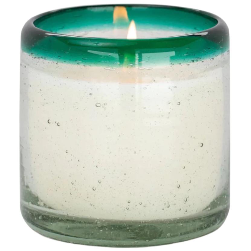 Welcome beach vibes into your home with La Playa. Each vessel is hand-blown bubble glass and will vary in size, shape, and the amount of bubbles - making each glass uniquely yours! These vessels are food-safe to use once the candle has burned and even feature our favorite margarita recipe on the back of the dust cover!