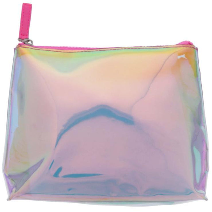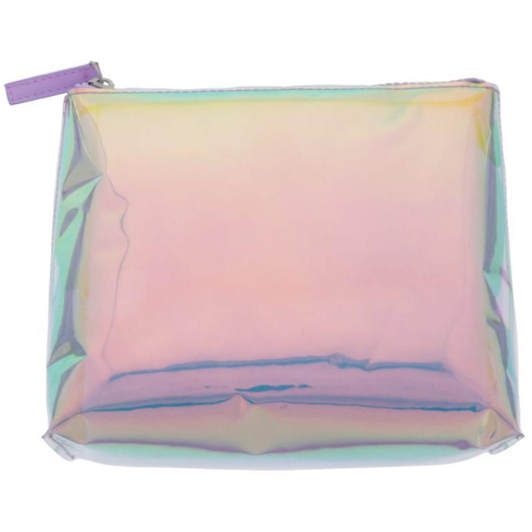 This Jane Marie Iridescent PVC Zipper Bag, measuring 6" x 7.5", offers a stylish and practical solution for organizing makeup and small toiletries. Crafted from shiny, flexible iridescent PVC, it adds a touch of glamour while remaining durable. The top zipper ensures secure closure and easy access, making it an ideal accessory for daily use or travel.