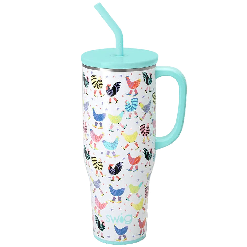 Hydrating has never been easier with our 40oz Insulated Mega Mug! A cup holder-friendly frame, a comfort-grip handle, and a plastic straw with a silicone flexi-tip all come together to create your new favorite Swig.