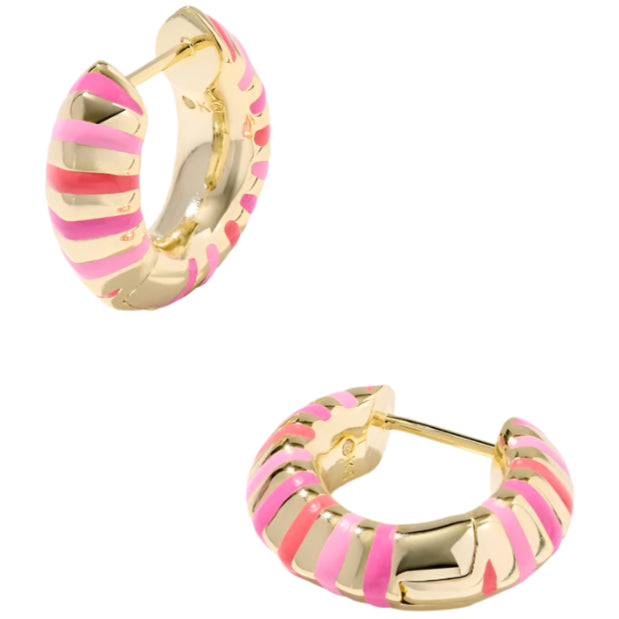 One of Kendra Scott's bestselling huggie styles is looking more colorful than ever before, say "hey" to the Mikki Gold Enamel Earrings! Our Mikki Huggies have a flattering silhouette that looks great on everyone, and now they’re finished with fun stripes in hand-painted enamel for a fresh and flirty look. 0.67" outer diameter.