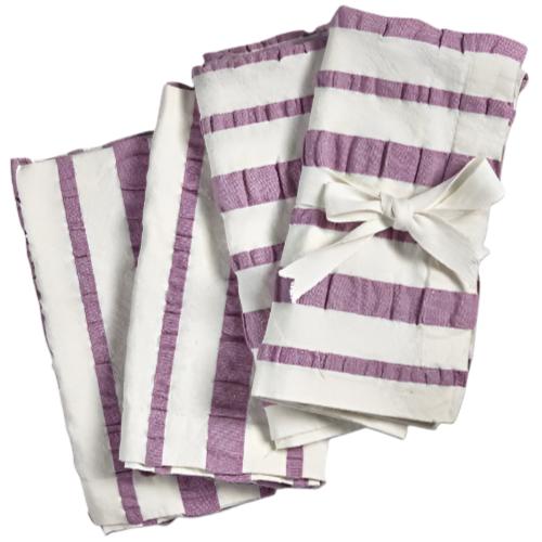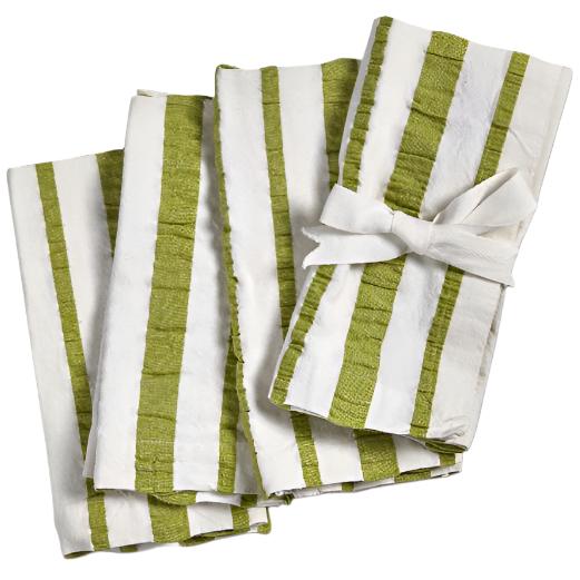 Expertly crafted from 100% cotton, these Soft and absorbent Seersucker Stripe Napkins add a touch of style and functionality to your table settings. With mitered corners and a classic yarn dyed woven design, they are perfect for any occasion and a reusable alternative to paper napkins. Set of 4, 20" square each.