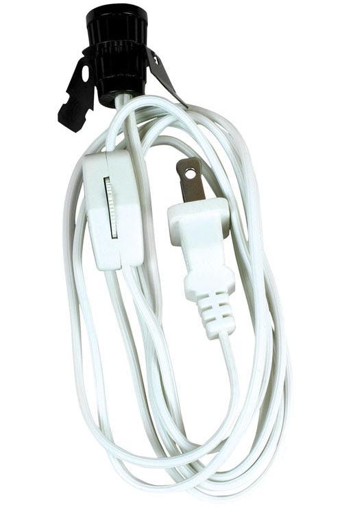 This lamp cord with an attached clip-in socket is perfect for lighting up crafts and seasonal ceramic houses and figurines. The 6-ft. cord includes a preinstalled feed-through switch to easily turn the light on and off, as well as a polarized plug for safety. Easy to use. Durable and long lasting. For use with applications with a one-in. diameter hole opening, the clip-in socket snaps into place making installation quick and easy.