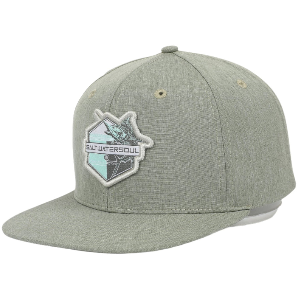 Embrace the sea with our Salt Water Soul Green Marlin Snapback Hat. Its 6-panel structured design offers a perfect fit for any head size, while the Marlin patch adds a touch of ocean vibes. Made from 100% cotton, this hat is both comfortable and durable. Plus, the adjustable snap allows for a customized fit.
