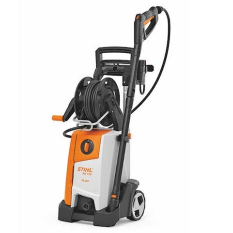 The compact, lightweight Stihl RE 110 electric pressure washer provides an easy-to-use solution to help you with your cleaning to-do list. The RE 110 delivers 2,000 PSI water pressure to quickly and efficiently clean decks, driveways, sidewalks, and more. With its integrated pressurized hose reel, users can easily wind and unwind the 23' high-quality hose unlike storage reels where the high-pressure hose must be connected and disconnected with each use. It also makes it easy to store when done. Additionally, it comes with an adjustable flat-jet nozzle, rotary nozzle and a detergent sprayer to tackle a variety of jobs around the home and garden. Ideal for cleaning automobiles, boats and more, the RE 110 maximizes energy efficiency by shutting down the motor when the wand is released and reactivating the motor when the trigger is reengaged.