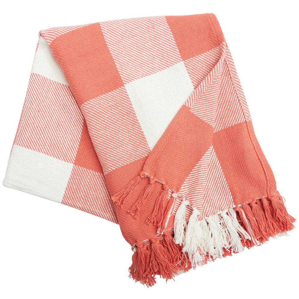 Bring a classically casual look to your home with the Franklin Coral throw blanket. This pattern and refreshing color way set the tone for all-season style. Crafted of cotton, this woven throw is machine washable for easy care.