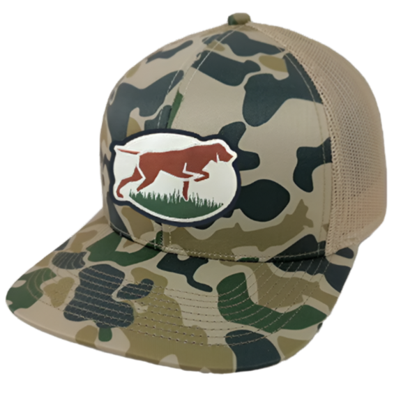 Stay stylish in the great outdoors with the Southern Strut Camo Pointer Hat. This trucker-style cap features a bold camo pattern and an embroidered pointer dog design, ideal for hunting enthusiasts or anyone with a love for the outdoors. With its mesh back and adjustable snap closure, this hat provides a breathable and customizable fit for all-day comfort.
