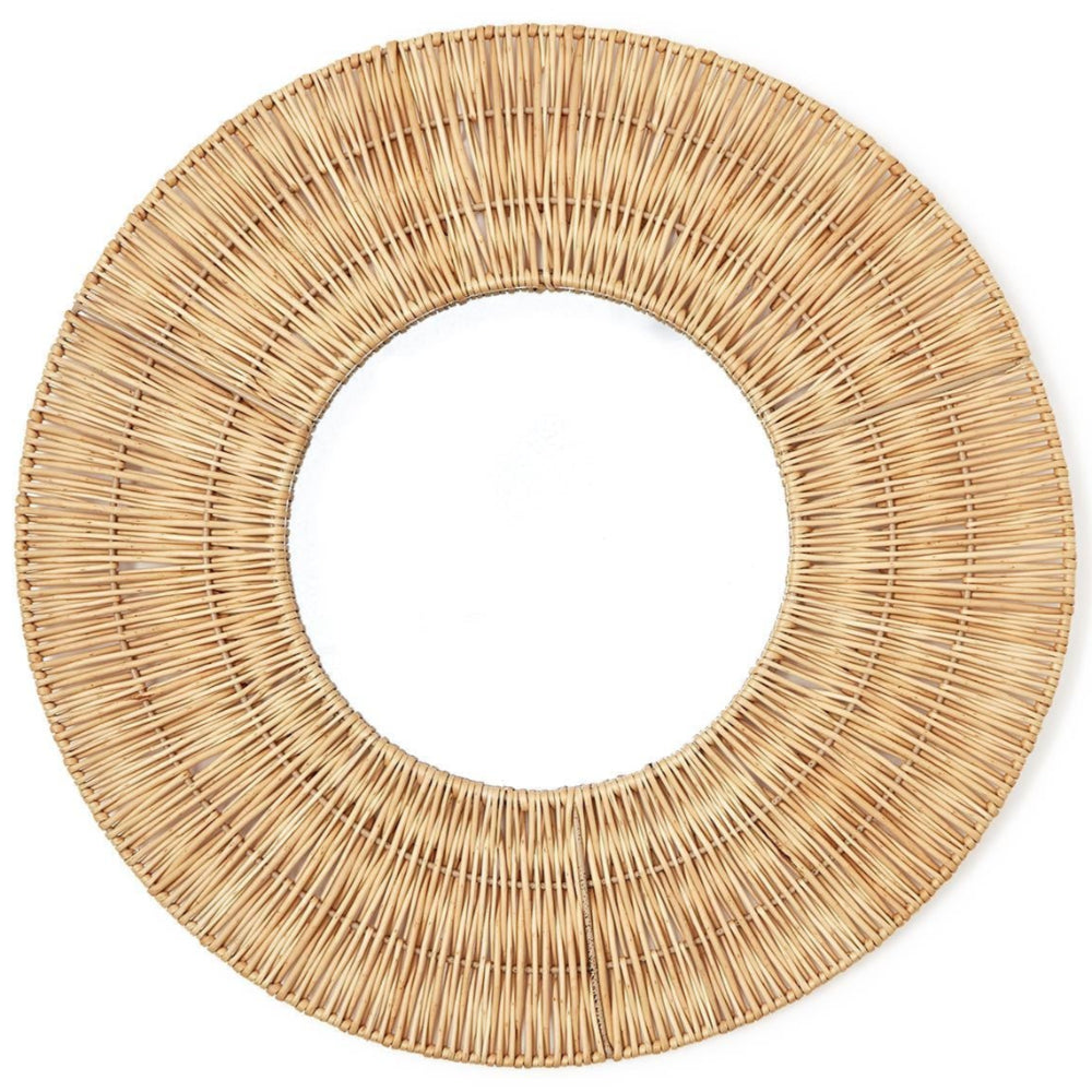 Hand-crafted to perfection, this mirror boasts a unique wicker design, adding a touch of natural elegance to any room. The minor imperfections and color variations only enhance its beauty. Hang it in your entryway for a warm welcome or in the living room to create a focal point. Inner mirror diameter 11.5".